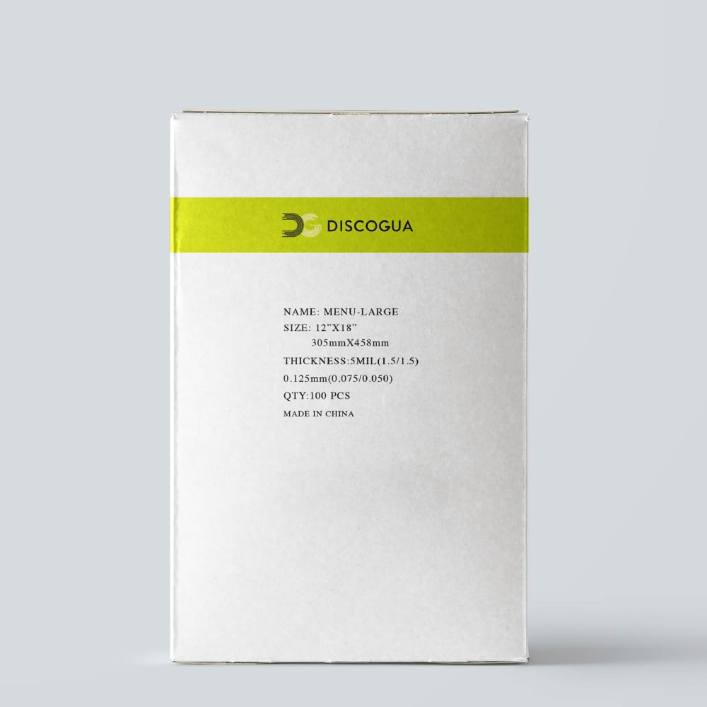 PLASTICO EN CAJA DCG TAMAÑO MENU DE 12" X 18" X 5 MM (100’S)